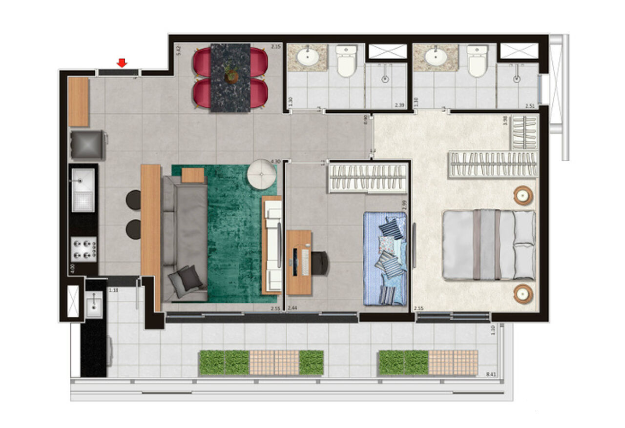 LIVING, SL. JANTAR, TERRAÇO, 1 SUÍTE, COZINHA, BANHEIRO, ÁREA DE SERVIÇO, 1 VAGA